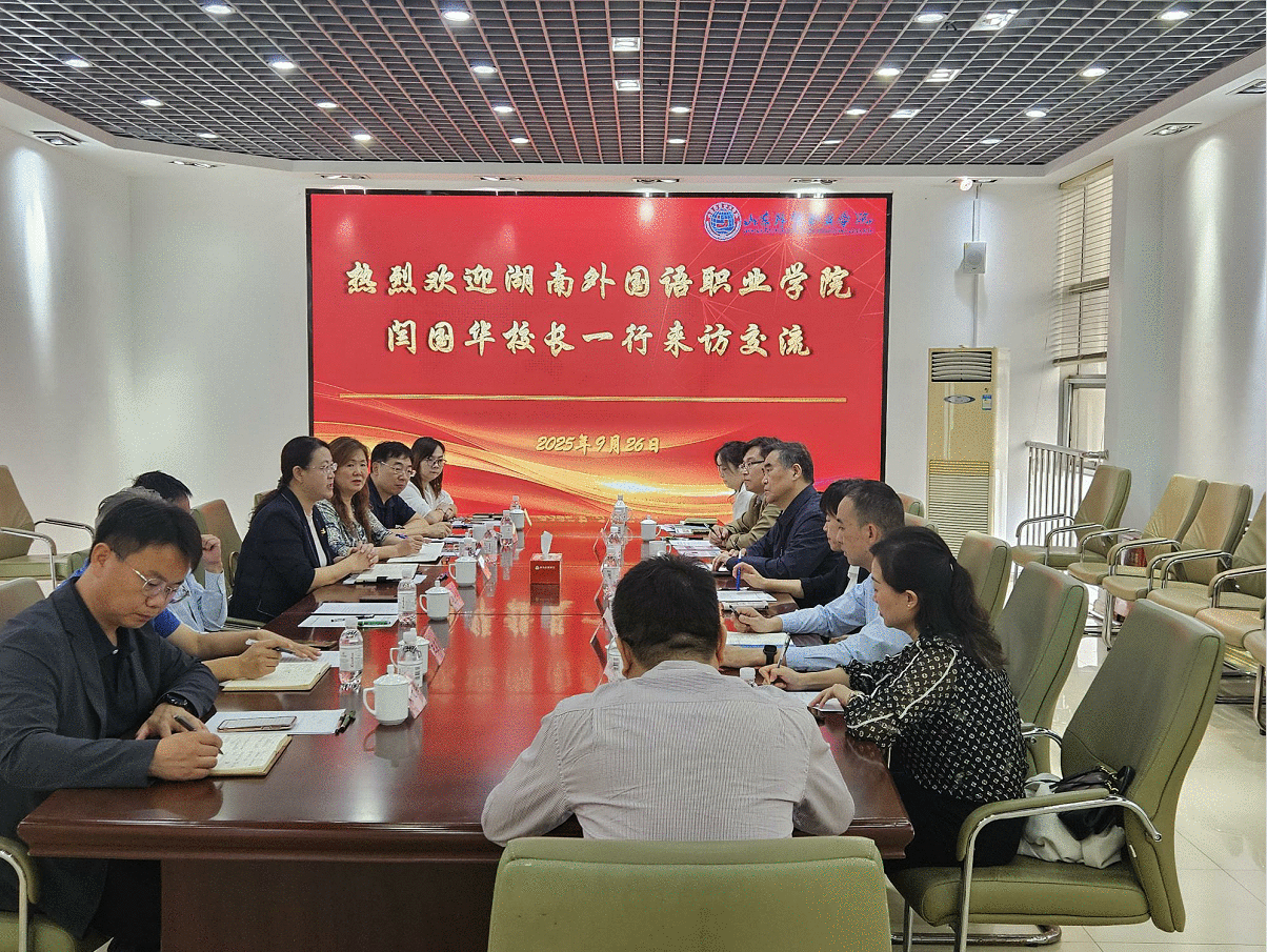 9月26日上午,中国职业技术教育学会外语教育工作委员会副主任、湖南外国语职业学院校长闫国华,中国职业技术教育学会外语教育工作委员会秘书长、外语教学与研究出版社职业教育出版分社社长李淑静等一行7人来访BetWay体育平台。交流双方在学院图书馆二楼会议室举行了座谈。院长刘珉、公共英语部主任崔卫等相关部门负责人参加了座谈。